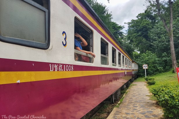 After basking in history, we proceeded to Tham Krasae Bridge railway station. For the second part of our itinerary, we are going to actually experience riding the train that plies the Death Railway. The view at the railway station was breathtaking, as it flourished with the greenness of nature. This part of the Thai-Burma railway features a wooden bridge that slithers along the river and flanked on the mountainside. It was, in itself, a breathtaking view. Curious tourists can walk on the bridge and take picture, something we did while waiting for the train to arrive. Once it did, we hopped in for the ride. The idyllic view compensated for the shaky ride. Words are not able to capture the experience and the view.